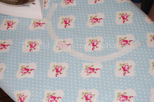 The neck edge must match the entredeux (which has been cut to fit the garment).